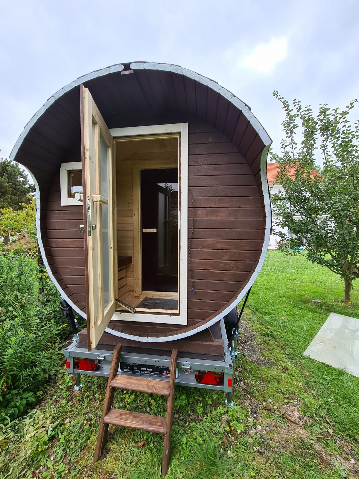 Da das Saunafass nicht uns gehört, ist die Buchung nicht über uns, sondern direkt über die